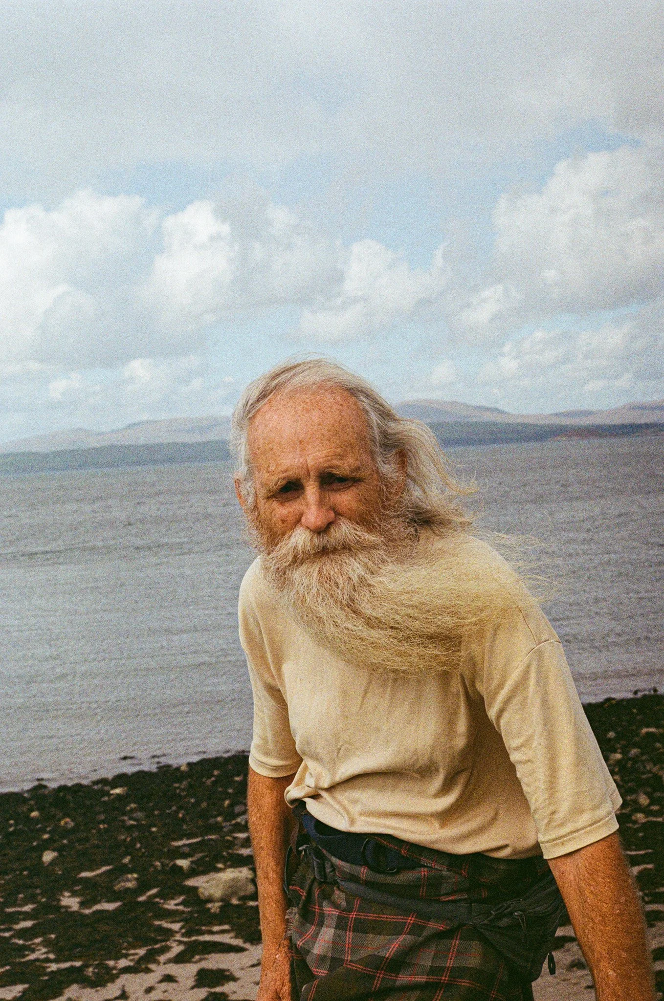 It was on their favourite beach at Ganavan Sands that my auntie told me about an interesting character I should meet: a man wearing a kilt who walks barefoot on the beach every day. She said, in her typically Mancunian way, “he seems like your sort of person,” meaning someone with character. It suddenly began to pour it down, and as a rainbow emerged, so did the man she had told me about, emerging from the sea. I couldn’t believe it. He toddled on past us with a smile, waved hello, and promptly continued his march up a small cliffside.
